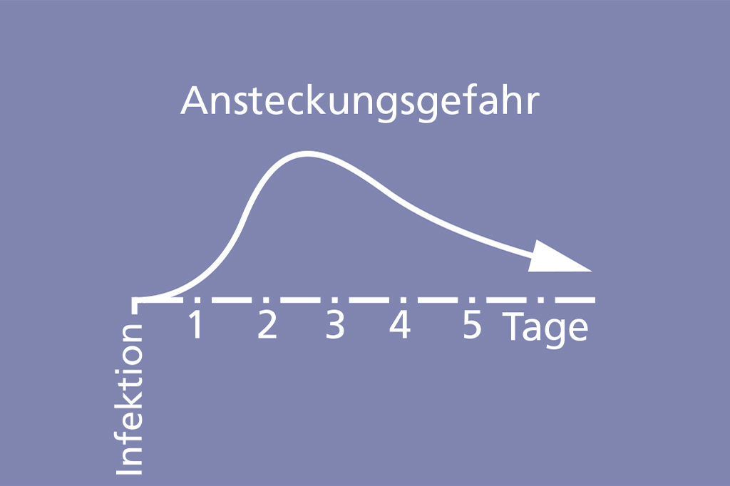 Bei hohem Ansteckungsrisiko oder um eine Ansteckung anderer zu vermeiden, empfiehlt es sich, eine geeignete Atemschutzmaske zu tragen!