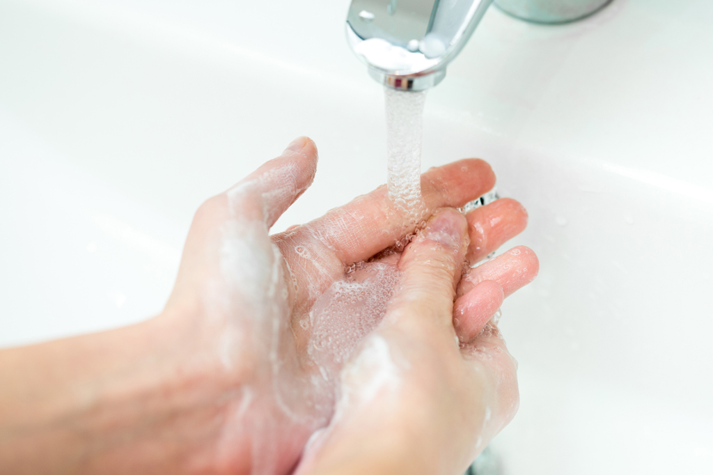 Waschen Sie sich häufig die Hände mit Wasser und Seife.